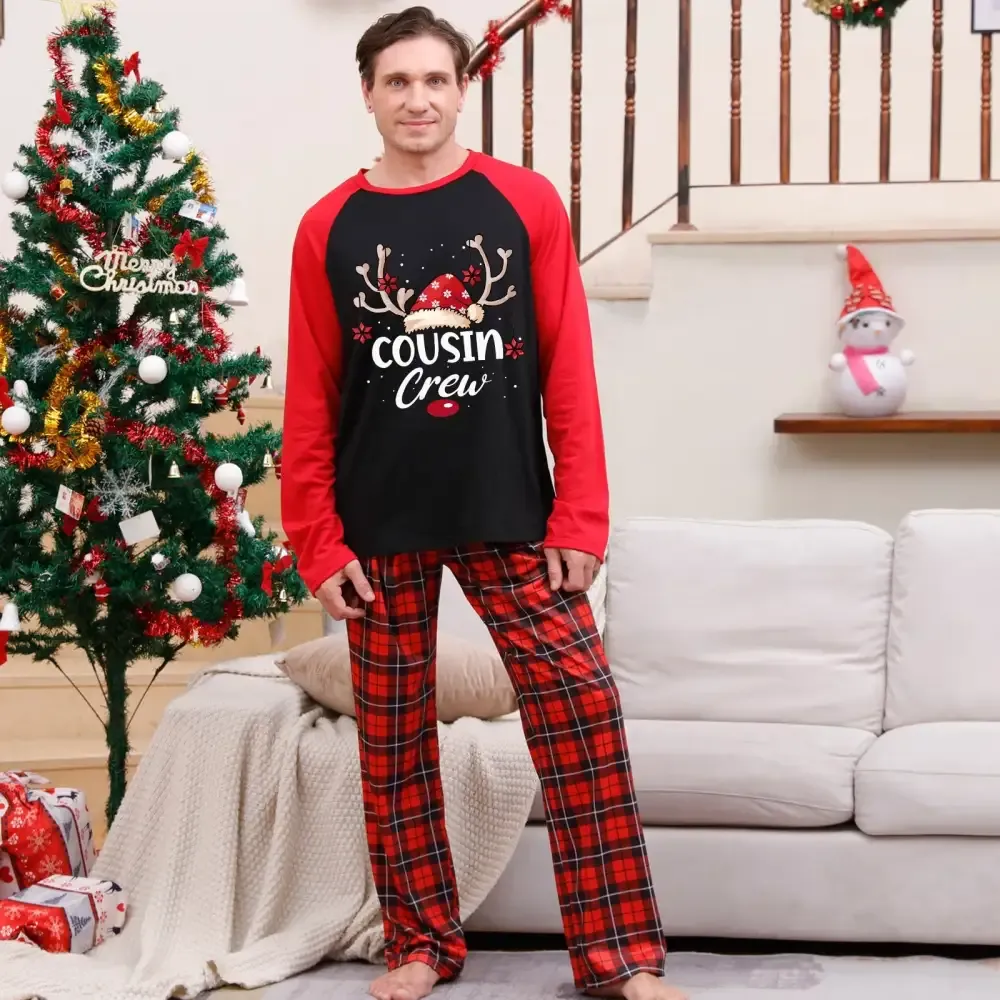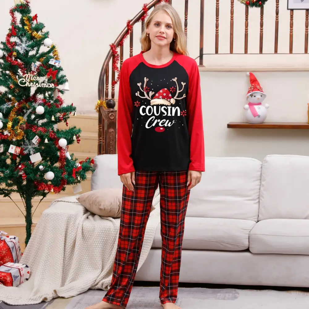 Cousin Crew parent-child black pajama set with Christmas hat print