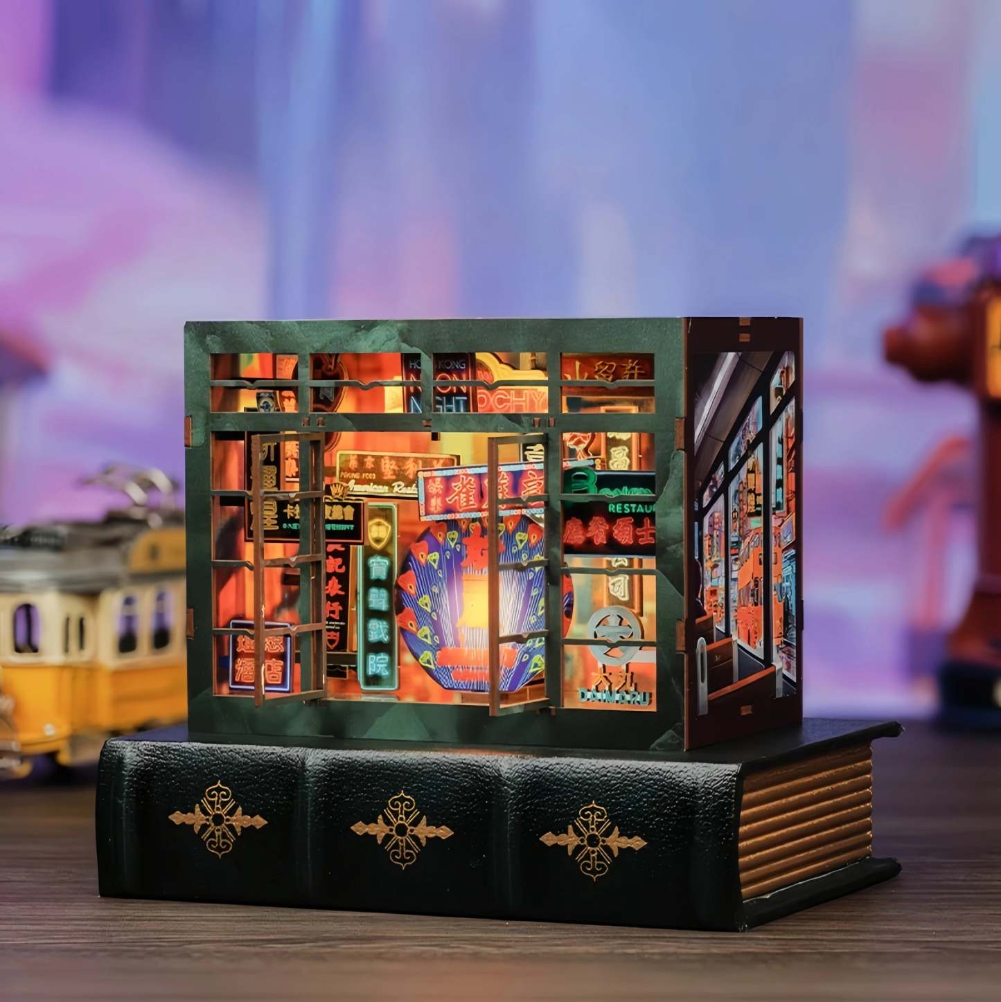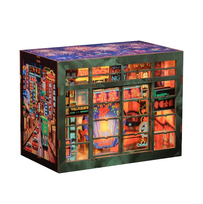 The Hong Kong Neon Night DIY miniature captures the city after dark—when shop signs flicker on, alleys glow with color, and the streets never quite sleep. Layered façades, signboards, and windows recreate a nostalgic Hong Kong night scene that feels alive once the lights come on.
